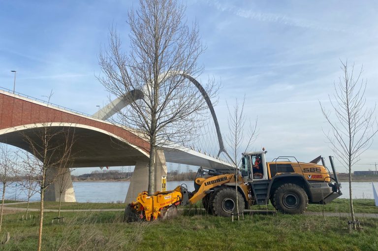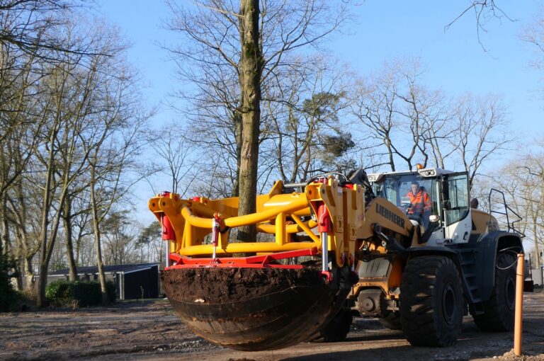 Unieke beelden van de Damcon boomverplanter KLR-3000 2M met loonwerker Geurs.