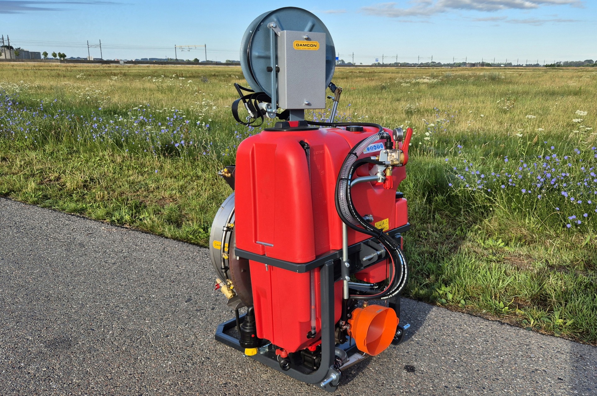 Met een tankinhoud van 200 liter, ventilator van 60 cm en 50 mtr veerhaspel wel een zeer complete spuit.