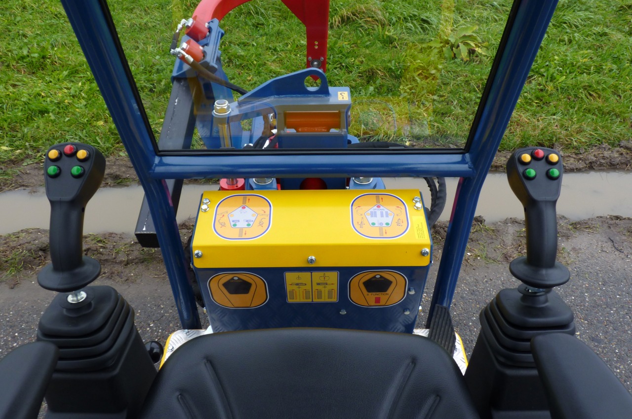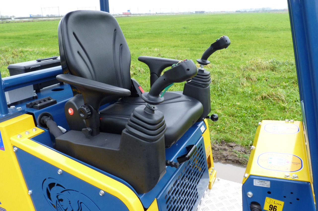 | Opties: | Hydraulische aandrijving, standaard zonder rooimes en mesarm, geschikt voor kluiten van 25-130 cm, veiligheidsbeugel, hydraulisch verschuifbare rupsen naar voren (30 cm) voor het beter uitheffen van zwaardere kluiten, hydraulische achterafsteuning, mechanisch snelwisselsysteem, standaard met 4 trilgewichten, joystick bediening, verticale lift, extra werklampen |